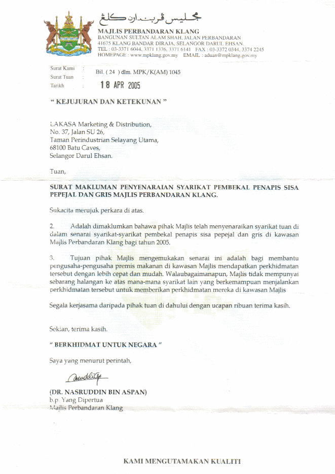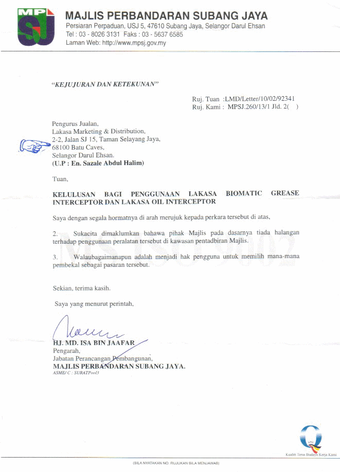Authority Approval Letter