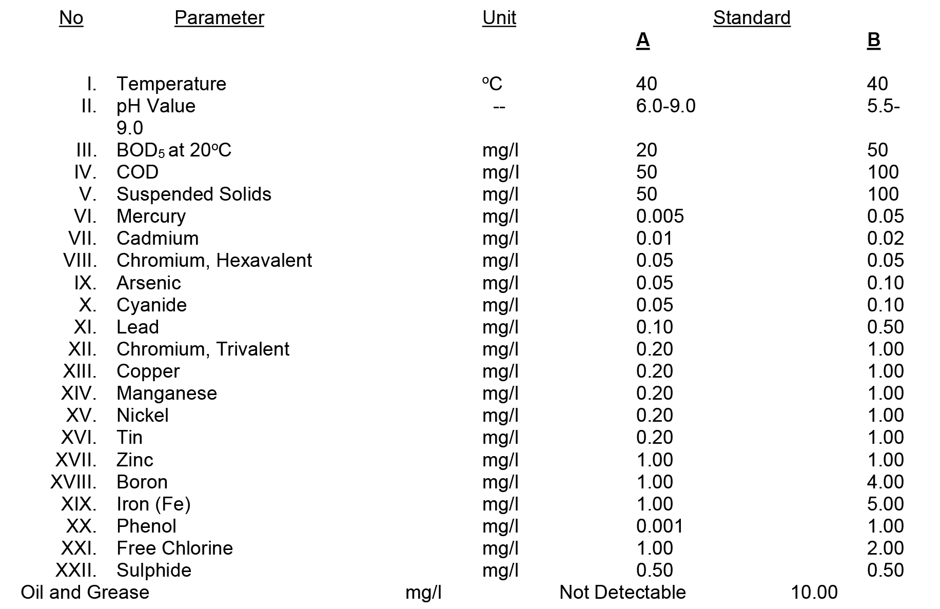2. That the effluent of which does not contain those contaminants listed as parameters (vi) to (xvi) in the first column of the Third Schedule ;