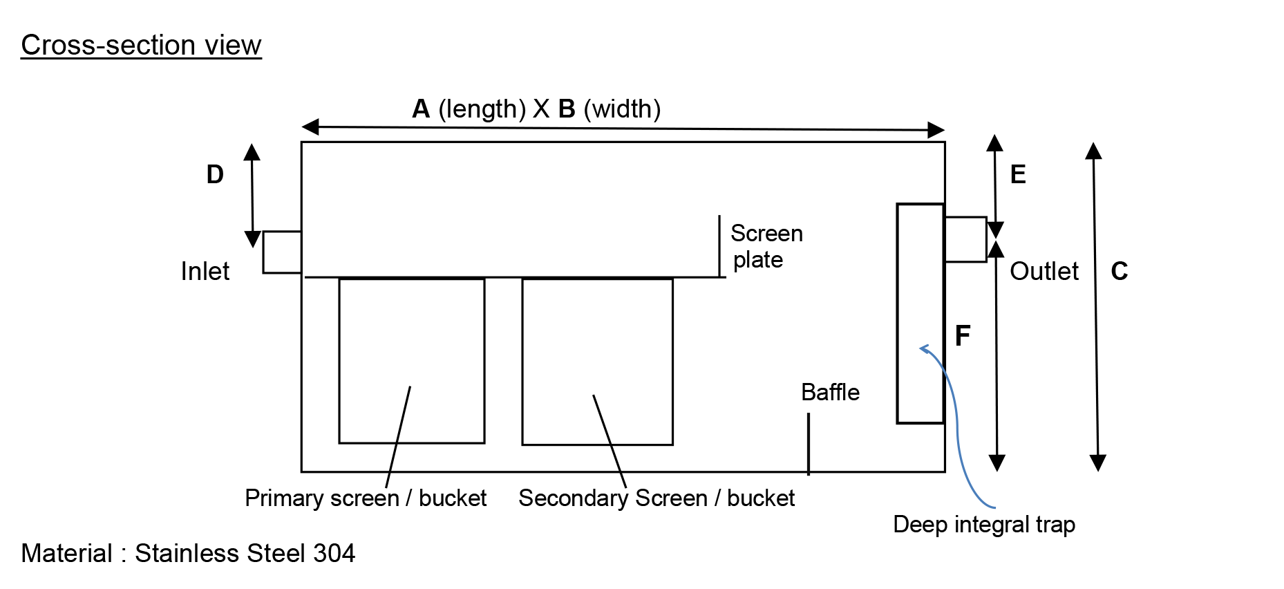 Sizing criteria : The system must be of adequate size and design to allow for cool-down of waster water so that the separation can be more readily achieved. Designed to achieve a minimum Water Retention Time (WRT) of 1 minute (with average WRT thru-out the day normally more than 30 minutes. This will be achieved when the pattern of water flow is in intermittent manner) for satisfactory removal Percentage and avoid overflow during peak flow of incoming waste water.